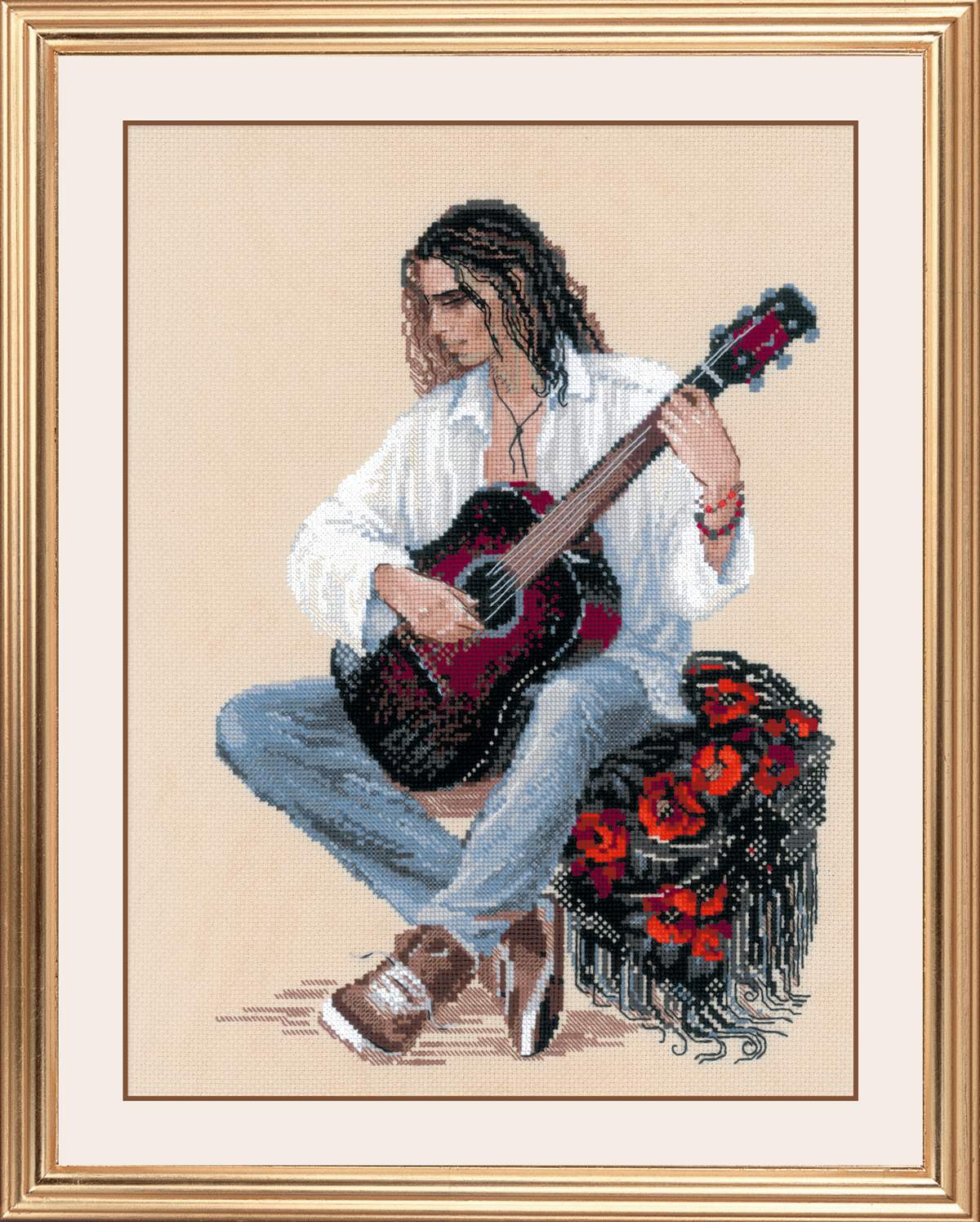 Вышивка РИОЛИС 1766 «Гитарист» проникнута нежностью и очарованием. Молодой человек взял в руки гитару, чтобы наиграть теплую уху мелодию в ожидании своей дамы сердца. Эта вышитая картина станет замечательным подарком и идеальной парой к набору 1740 «Танцовщица». Танцы, музыка, страсть и немного меланхолии – предлагаем вам окунуться в горячий испанский характер и прочувствовать удивительные эмоции на себе.