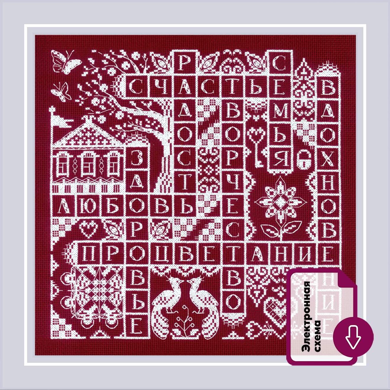 В наборе используются техники: крест, стежок.